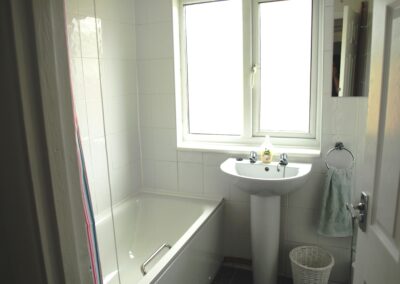 Bathroom: Double glazed window to rear, shower over bath, wash hand basin, fully tiled with low level WC
